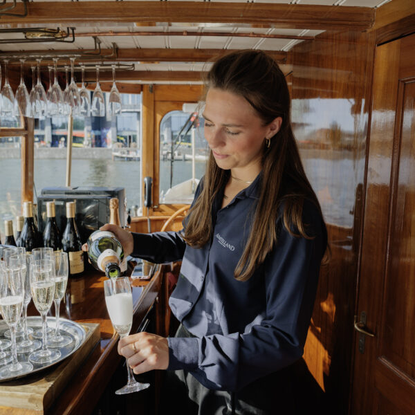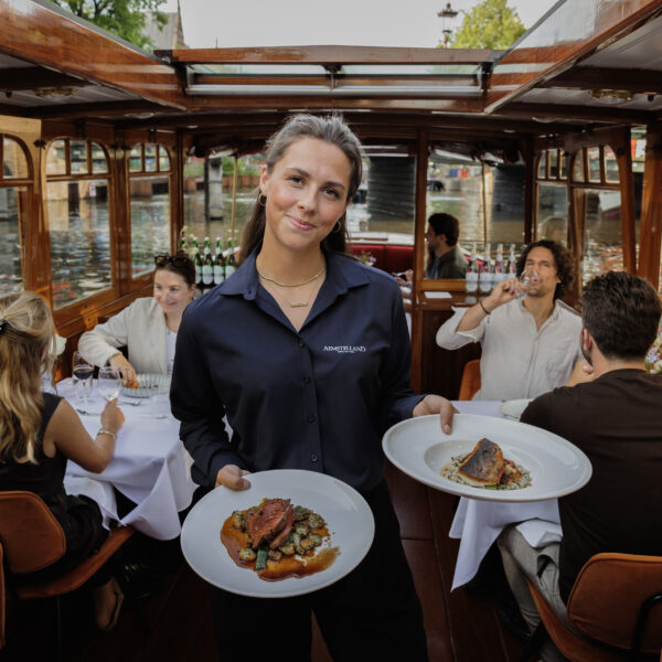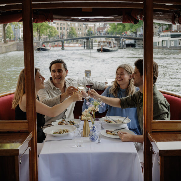 Let yourself be transported on a journey through time as you cruise along the beautiful canals of Amsterdam, surrounded by the comfort and allure of a bygone era.
