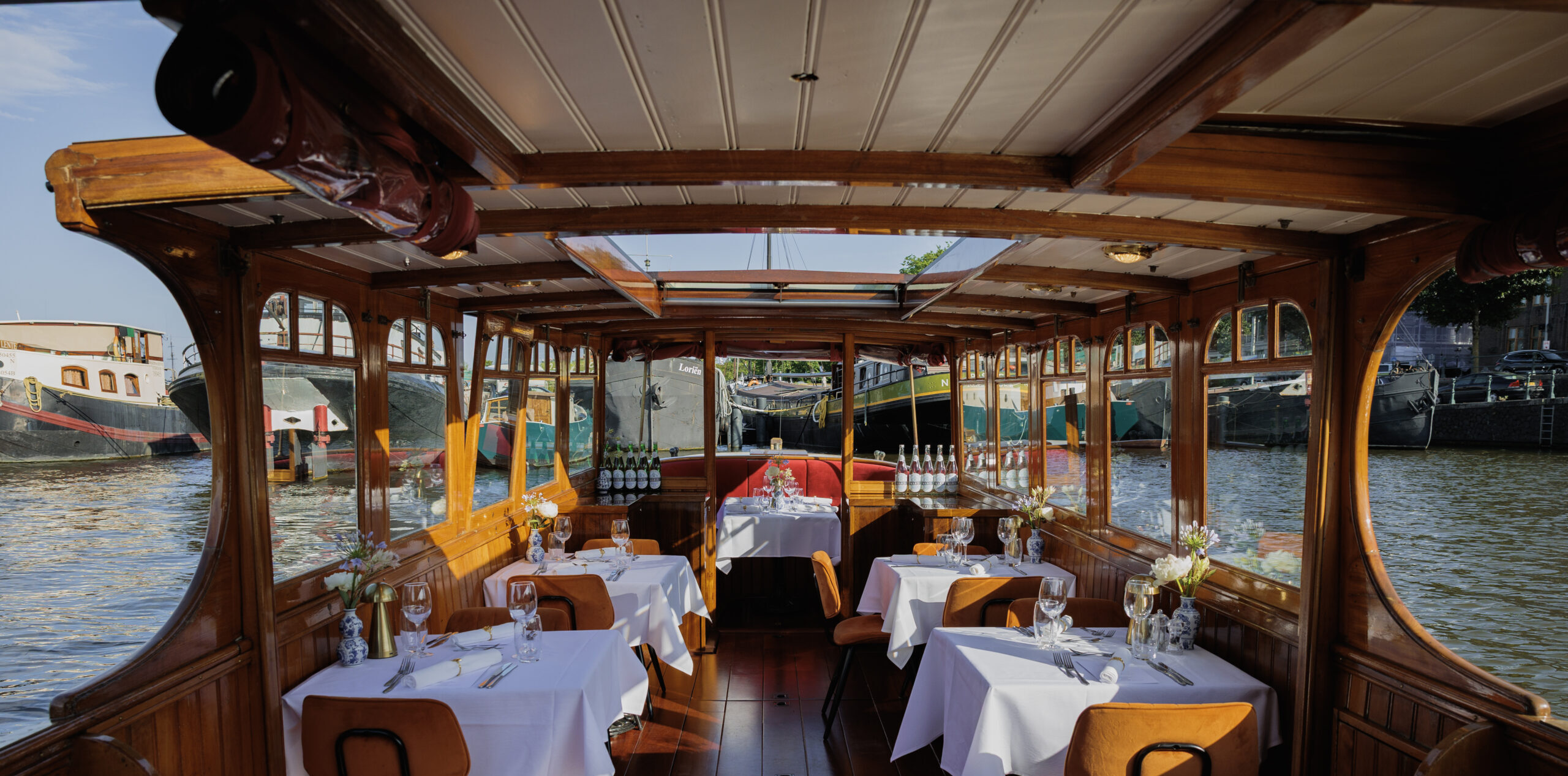 Let yourself be transported on a journey through time as you cruise along the beautiful canals of Amsterdam, surrounded by the comfort and allure of a bygone era.