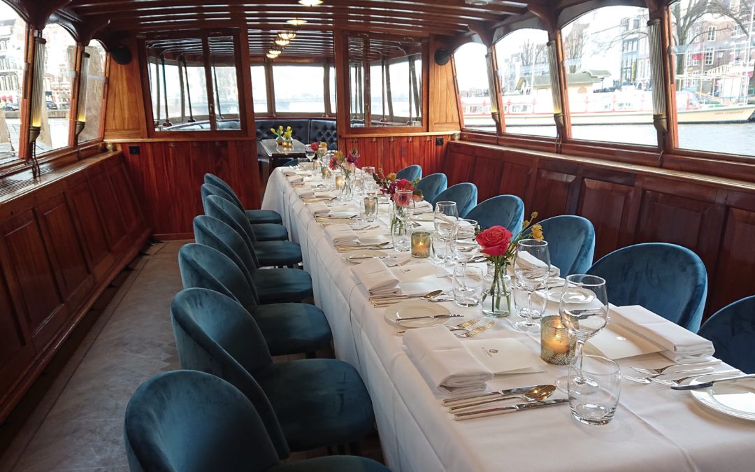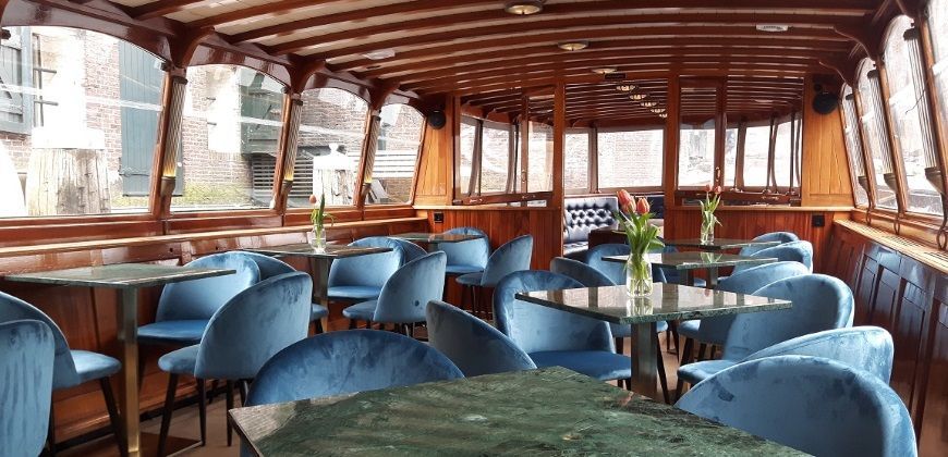 Sinds 1995 siert de ‘Monne de Miranda’ de Amsterdamse grachten als een indrukwekkende verschijning. Deze luxueuze salonboot biedt plaats aan 10 tot 50 gasten voor een lunch en/of diner aan boord. Wat deze boot echt bijzonder maakt, zijn de extra grote ramen die een adembenemend uitzicht garanderen terwijl je geniet van je maaltijd. Net als onze salonboot Elisabeth wordt de ‘Monne de Miranda’ elektrisch aangedreven, waardoor het varen fluisterstil is.